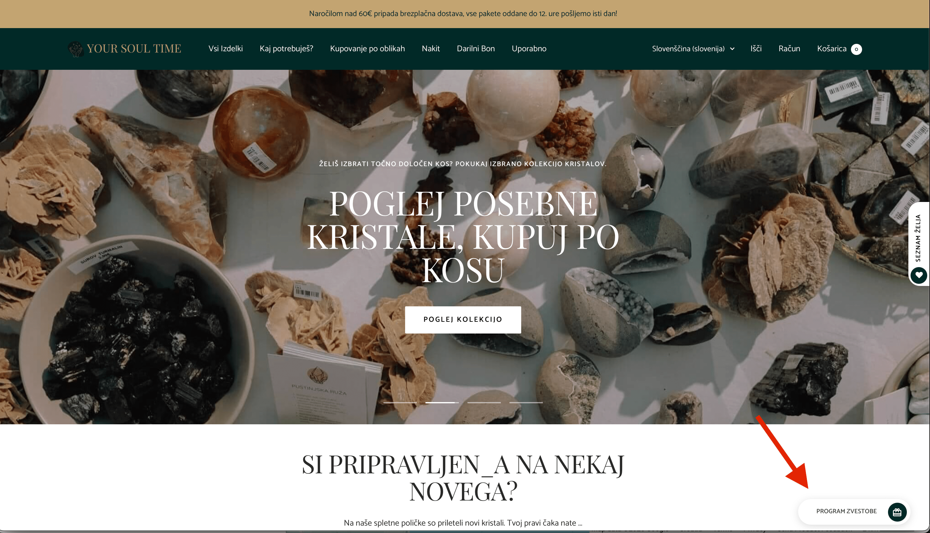 Ko se prijaviš v svoj račun, lahko v spodnjem desnem kotu zaslona dostopaš do zavihka "Program Zvestobe", kjer lahko spremljaš svoje točke in nagrade.